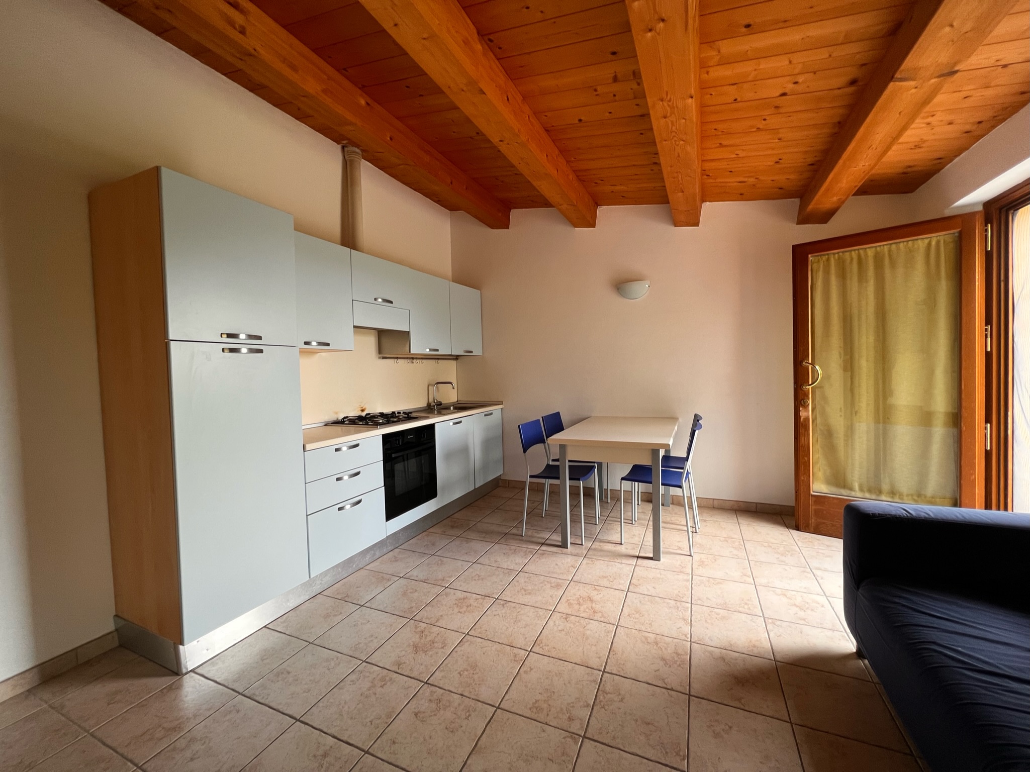 Appartamento al primo piano con soggiorno e cucina openspace, bagno e camera matrimoniale. Perfetto per le coppie, grazie al divano letto può diventare la soluzione ideale anche per tre persone.